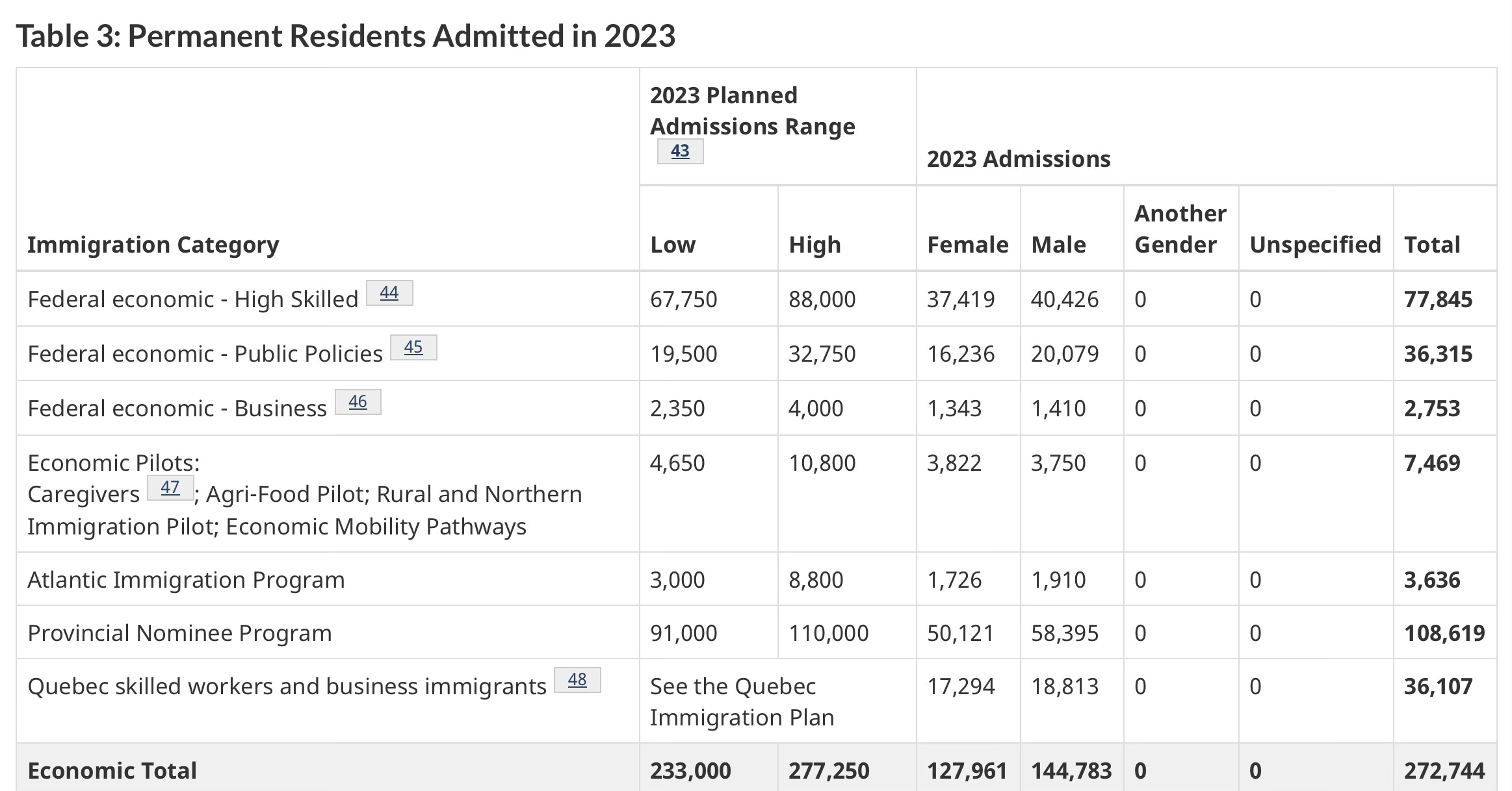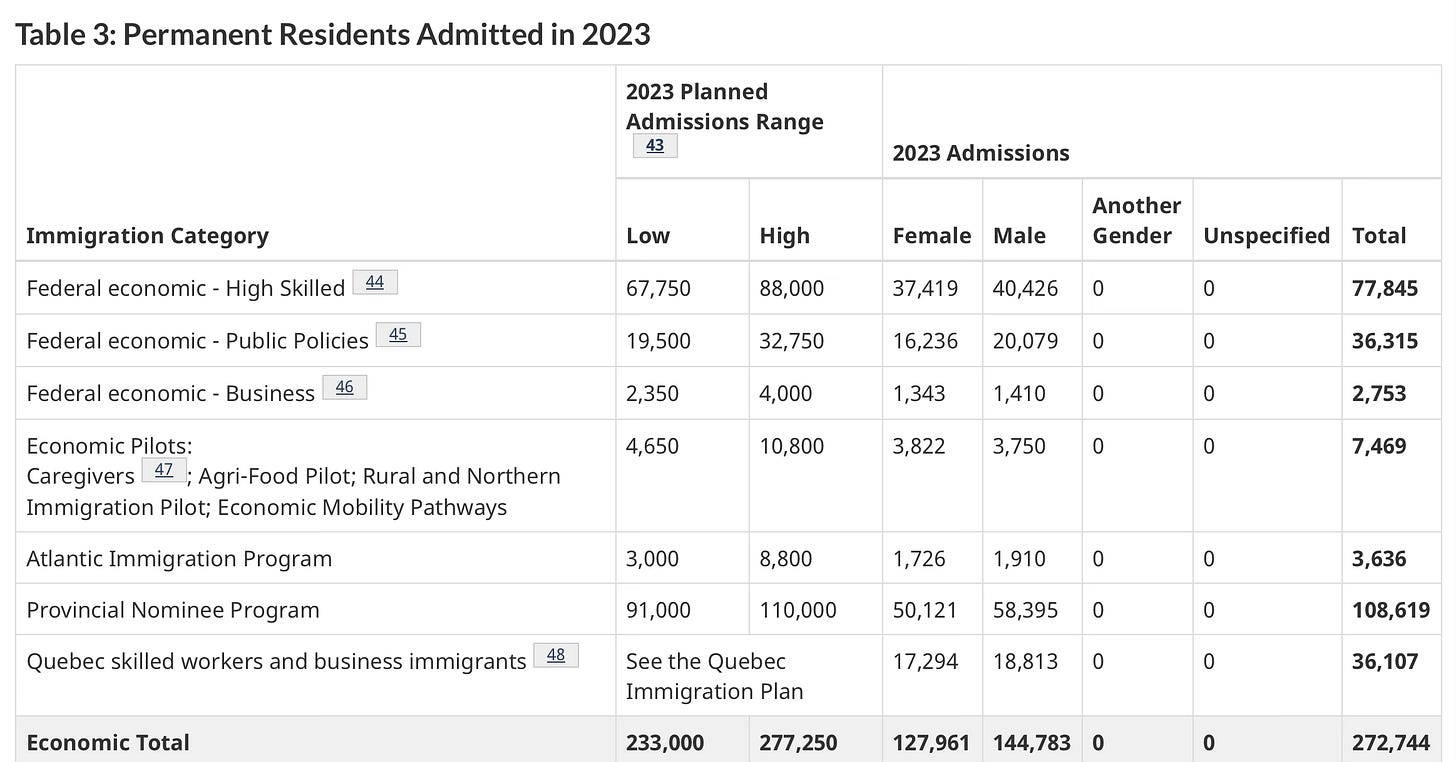 Includes admissions in the Federal Skilled Worker Program, Federal Skilled Trades Program and Canadian Experience Class.