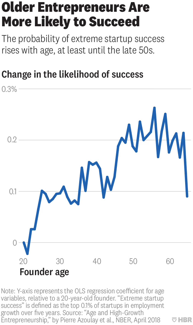 The potential 2nd order effects of policies like the H-1B program are notable. According to the Harvard Business Review, older founders have higher probabilities of success. The instinct to attract more experienced talent could be a winning idea.4 Time will tell.